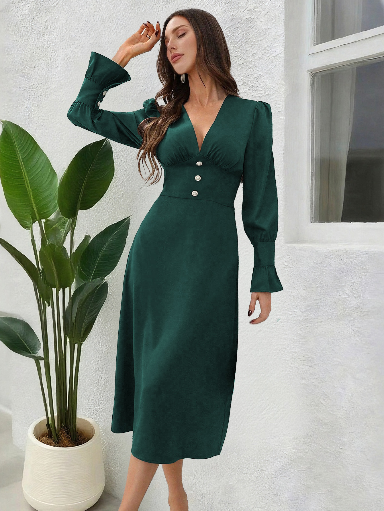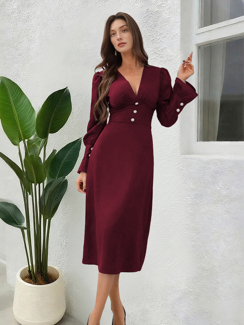 Autumn Casual V-Neck Shirt Dress