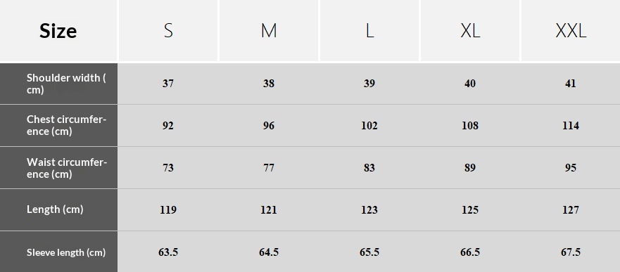 1. Asya bedenleri, Avrupa ve Amerika bedenlerinden 1-2 beden daha küçüktür. Bedeniniz iki beden arasındaysa, daha büyük olanı seçin. Manuel ölçüm nedeniyle 2-3 cm farklılık olabilir. 2. Lütfen ürünü satın almadan önce beden tablosunu dikkatlice kontrol edin, beden seçimi konusunda emin değilseniz lütfen müşteri hizmetlerimizle iletişime geçin. 3. Bildiğiniz gibi, farklı bilgisayarlar renkleri farklı şekilde gösterir, gerçek ürünün rengi aşağıdaki görsellerden biraz farklı olabilir.